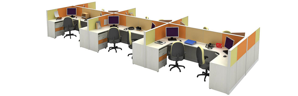 Our in house designs and options of finishes & colours are defined to create an ambience, as we call it, " A Refreshing Workspace ".